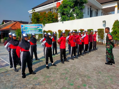 KENDAL - Peserta lomba Peraturan Baris Berbaris (PBB) dan Tata Upacara Bendera (TUB) terus di bina oleh Anggota Koramil 01/Kendal Kodim 0715/Kendal berupa kegiatan pembinaan mental dan fisik kepada Siswa-Siswi bertempat di halaman SMPN 2 Kendal, Rabu (1/11/23).