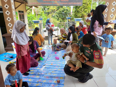 "Kegiatan yang di laksanakan Penimbangan berat badan, Pengukuran tinggi badan balita, pengukuran lingkar kepala, Pelayanan pemeriksaan Umum dan Pembagian Obat Cacing dan Vitamin", kata Serda Budi Mulyono.